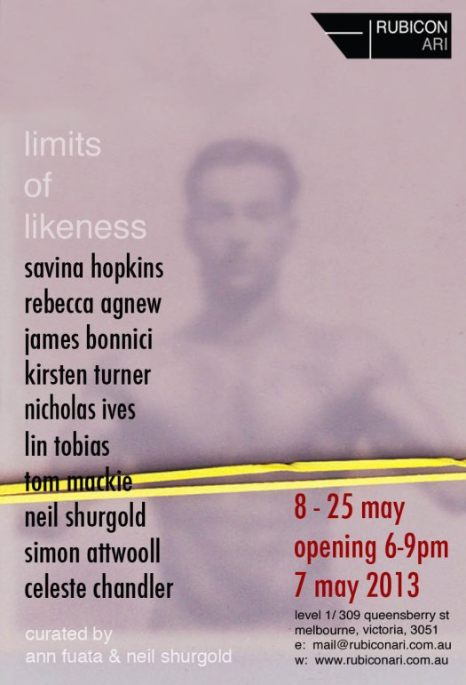 From these observations, I suggest the works exhibited in Limits of Likeness at Rubicon ARI explore ways to lose, and regain, the essence of a subject. Thus, the portrait becomes a “space of conflict” xvii : a pictorial zone where the sitter once was, but has now been superseded by an ‘increase in being.’ The artists in this exhibition do not refuse subjectivity, however there is an understanding of its dilemmas. As a result, likeness is represented as not exclusively physical or essential. As van Alphen explains with relation to Francis Bacon’s paintings, there is a conflict between the subject and representation: “He folds the subject back onto itself, endorsing the resulting fragmentation as the inevitable consequence of this denial of the unity-bestowing power of representation.” xviii Similarly, the works in this show are less concerned with a portrayal of concrete identity, and more with obscuring likeness to articulate a sitter interacting with their world. The overall element of obscurity found here—through abstraction, props, styles, compositions—encourages a moving in and out of reality. Realism, in this case, is used and rejected in order to echo the very history, and anxiety, of making faces.